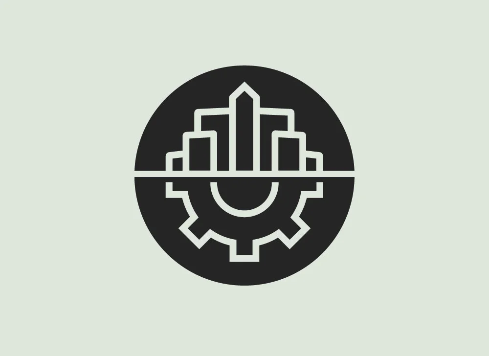 Logo mark for Central Standard, a software development company. The client kept referring to the concept that Central Standard were the hard workers behind the scenes, making sure things run smoothly. This mark references that, with a thriving city powered by a hidden machine.